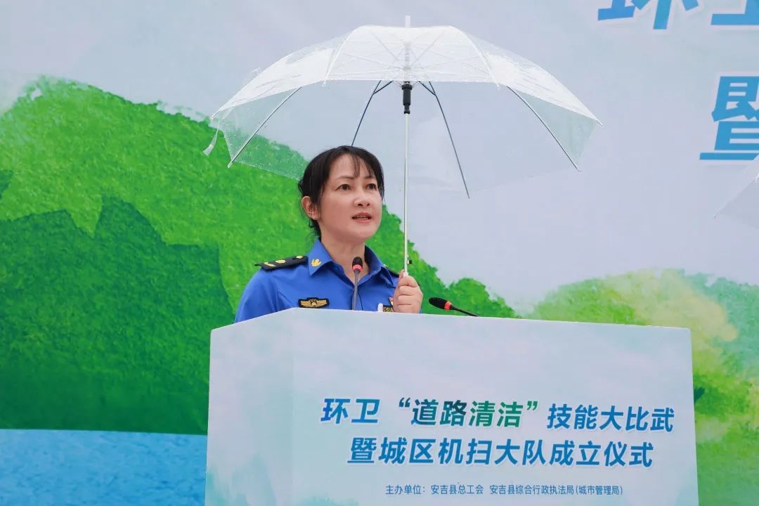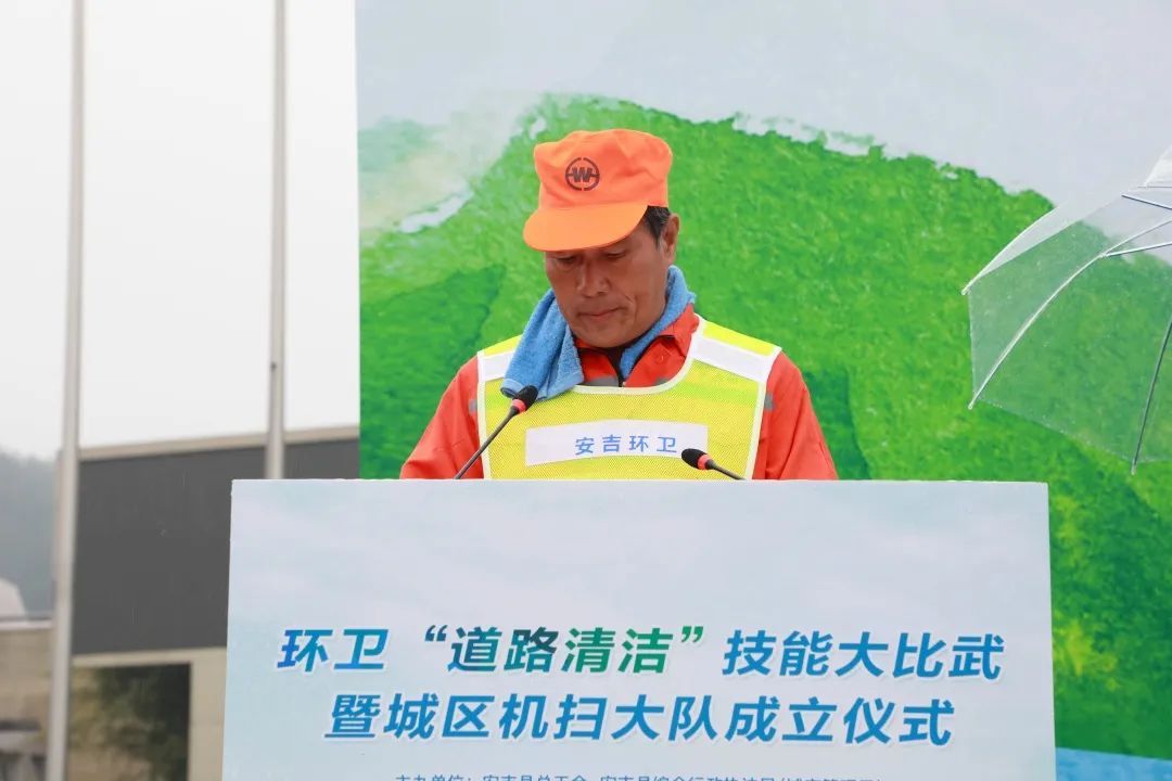 2022年5月20日上午,安吉縣環衛“道路清潔”技能大比武暨城區機掃大隊成立儀式在龍山體育中心舉行。縣人大常委會副主任、縣總工會主席王一明,縣總工會黨組書記、常務副主席朱車生,縣綜合執法局黨委書記、局長章熙翔,縣綜合執法局黨委副書記、副局長張惠紅,縣總工會黨組成員、副主席閻德順,縣綜合執法局黨委委員李斌出席,各鄉鎮(街道)分管領導,各產業系統工會負責人,遞鋪環衛所以及各物業公司機掃分隊代表參加活動。